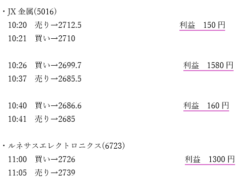 今日の取引