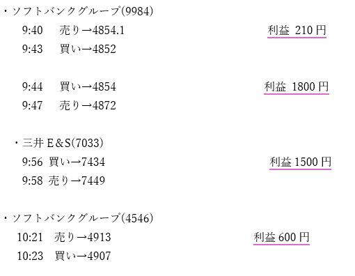・ソフトバンクグループは引けにかけてすごい下がったから切るか迷った。決算良かったから持ち越して正解だった。