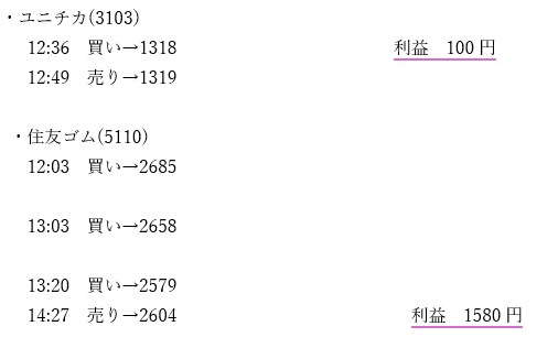 時間内に売れてなかったらもう100株も良い値段で売れたかも…