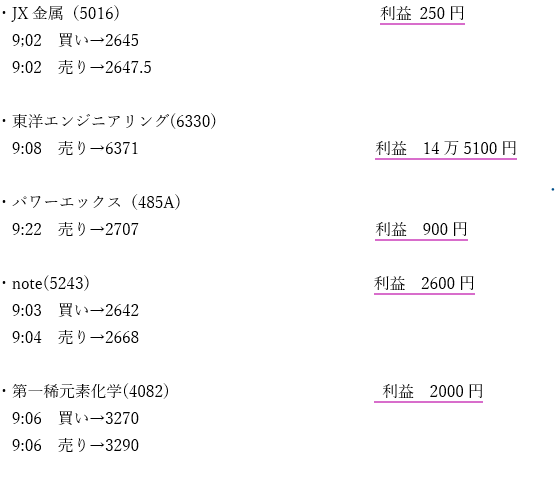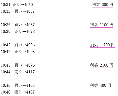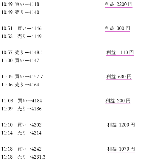やっぱり上がると思って買いで入って利益を取れたのはよかった。
