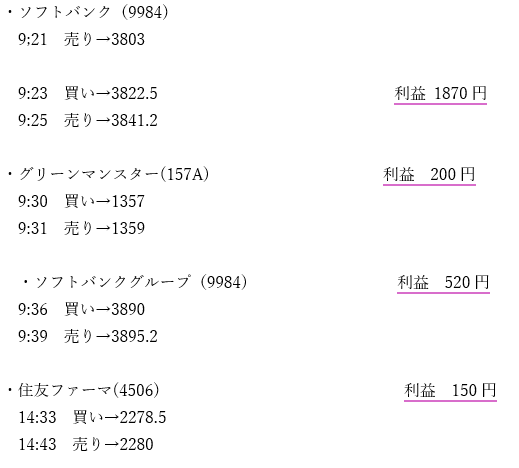 ソフトバンクグループでたくさん利益取れて嬉しかった。
