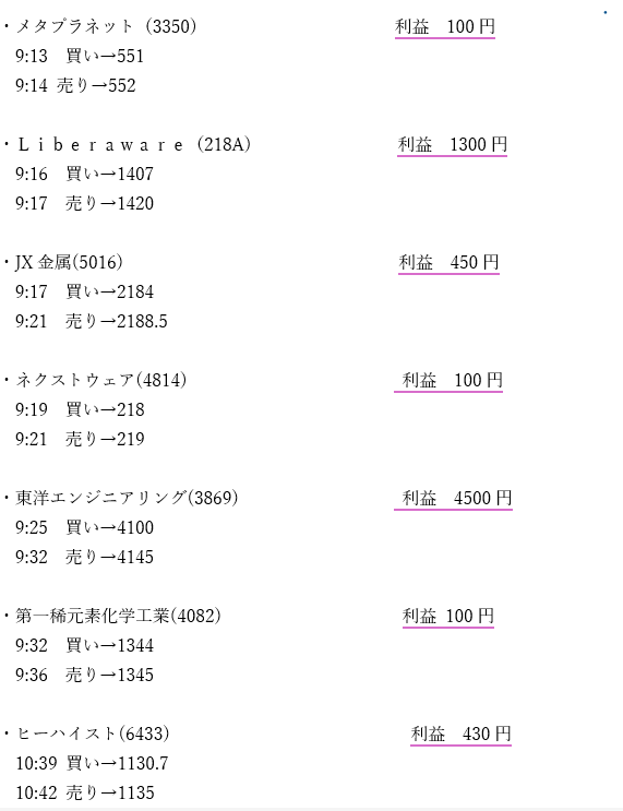 →いい所で買えている。30分ほど持っていたらもっと利益とれた。