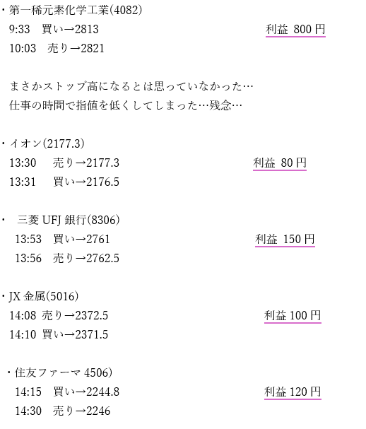 やっぱり上がると思って買いで入って利益を取れたのはよかった。